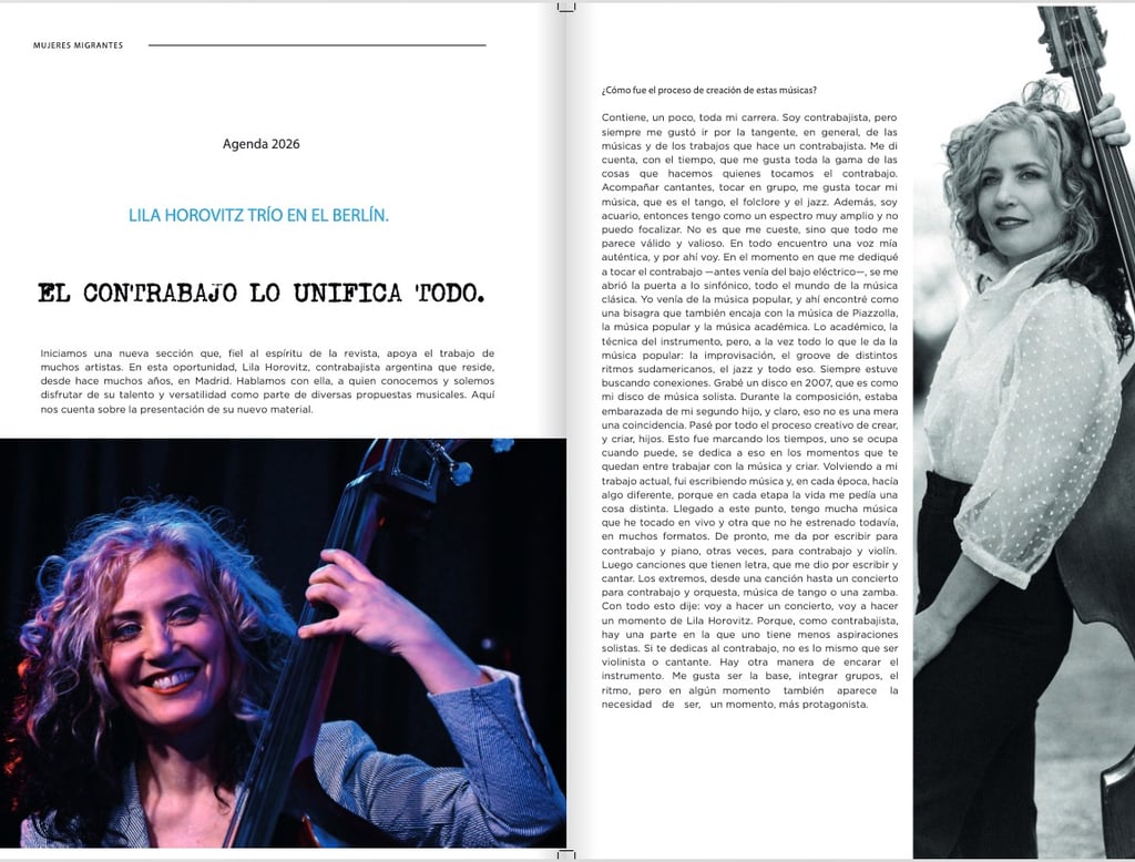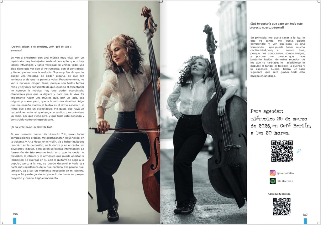 Lila Horovitz Trío es un proyecto de música de autor donde el contrabajo ocupa un lugar central, no solo como base rítmica sino como voz narrativa y protagonista melódico.